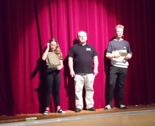 Begrüßung: Hr. Kasper, Alina Köknar und Felix Berger begrüßen die Theatergäste. |