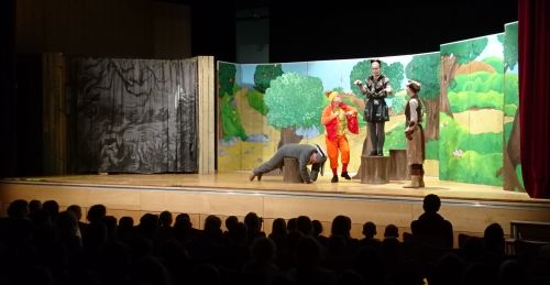 DIE BREMER STADTMUSIKANTEN, 320 Kinder des Kindergartens Lembach, der Volksschulen Lembach, Niederkappel, Pfarrkirchen und Putzleinsdorf sowie der 1. und 2. Klassen der TNMS Lembach verfolgten mit großer Spannung die Aufführung der professionellen SchauspielerInnen. |