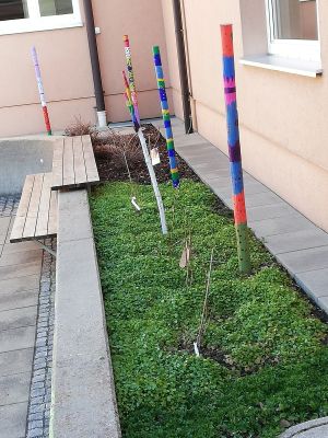 gab es ein großes Problem mit Engerlingen, die in den Sommerferien 2019 die Wurzeln der Pflanzen gefressen hatten. Die SchülerInnen waren fleißig am Graben und Suchen der Schädlinge. Außerdem wurden Himbeeren und Erdbeeren neu gepflanzt. Zwischen den Erdbeeren wurde Knoblauch gesteckt und mit viel Stroh gemulcht, zwischen den Himbeeren wurden Winterpostelein und Vogerlsalat gesät. |