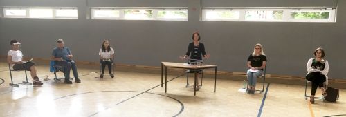 Frau DNMS Maria Lindorfer leitete ihre letzte Konferenz am Mo, 06. Juli 2020 - Corona bedingt mit Sicherheitsabstand - im Turnsaal. Wie werden wir die Konferenzen im Herbst erleben? |