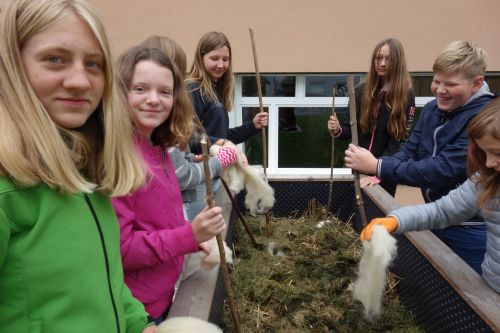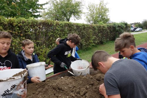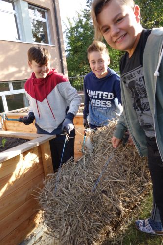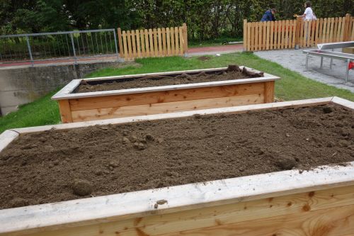 In der 1. Schulwoche wurde das Hochbeet unter der Aneitung von Frau Martina Kramer mit Ackererde, |