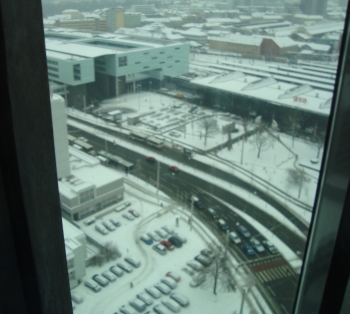Anschließend fuhren wir mit dem Lift in schwindelnde Höhen (15. Stock) und genossen die Aussicht vom Wissensturm.