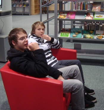 Doch wir hatten noch nicht genug. Die Stadtbibliothek war unser nächstes Ziel. Herr Habringer war mit voller Begeisterung dabei. |