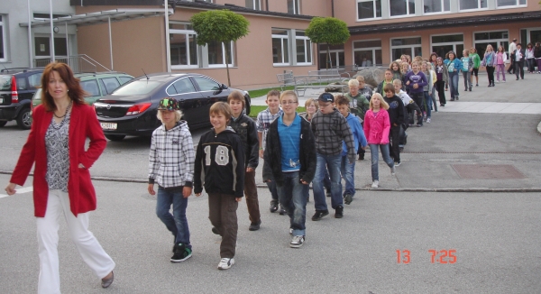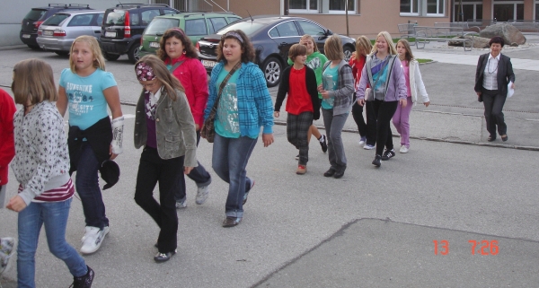 Die Schüler/innen der 1. Klassen auf dem Weg zum Eröffnungsgottesdienst -