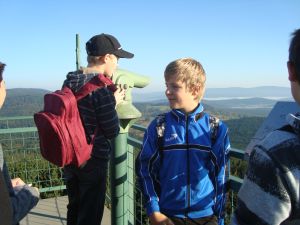 Zuerst stiegen wir den großen Turm am Moldaublick hinauf, wo wir dann erfuhren,