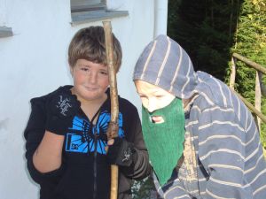 Später bastelten wir die Masken. Danach gingen wir Käsekrainer und Knacker braten.