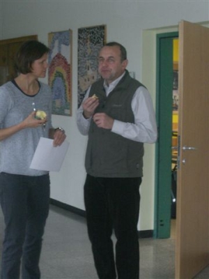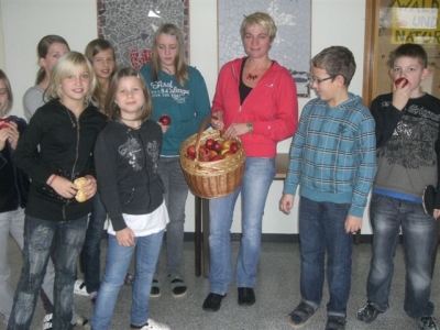 Der Elternverein teilte die Äpfel vor den Klassen aus. |