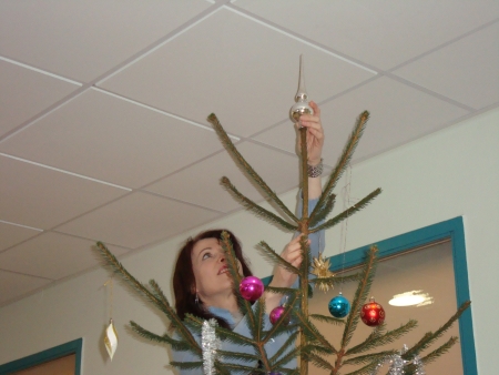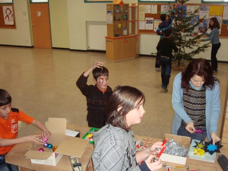 Vor einigen Tagen schmückten 6 Schüler/innen der 3a mit Hilfe von Frau Leitenbauer den Christbaum für die Schule. |