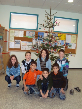 Auch unsere neuen Schüler Habibullah, Sijad Ali und Idris aus Afghanistan halfen begeistert mit. Vermutlich war es der erste Christbaum ihres Lebens, den sie schmückten. |