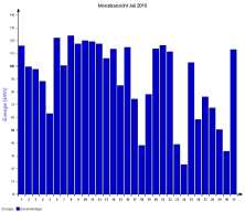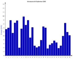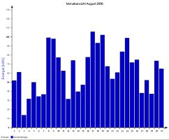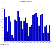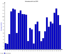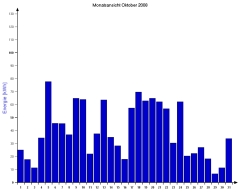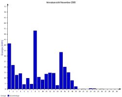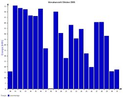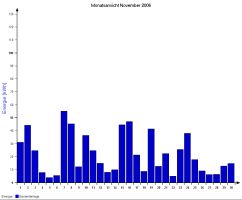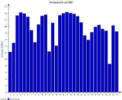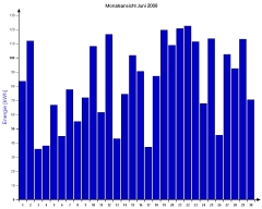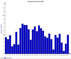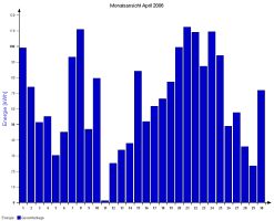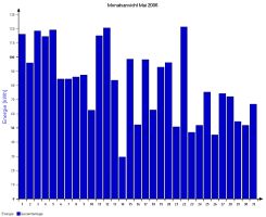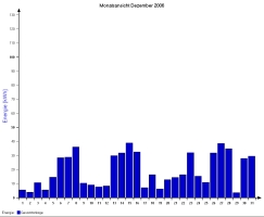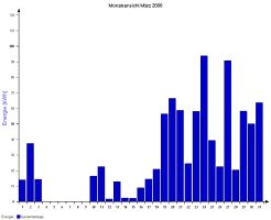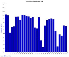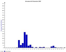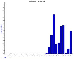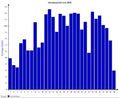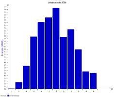 Jahresproduktion 2006: 18,39 MWh !! 9,57 t CO2 konnten dadurch eingespart werden. Der prognostizierte Jahresertrag von 17000 kWh wurde trotz Schneelage im Jänner und Februar und "schlechtem" August übertroffen. |