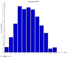 Jahresproduktion 2007: 20,27 MWh Dies bedeutet neuen Rekord! 10,74 t CO2 konnten dadurch eingespart werden. |