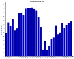 Jahresproduktion 2008: 18,52 MWh !! 9,82 t CO2 konnten dadurch eingespart werden. |