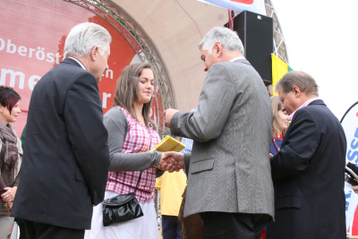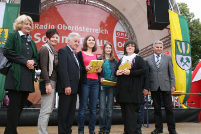 Bei der Preisverleihung am 25. Juni 2011 gratulierten die Initiatorin Frau Hofmann (Club der Vielleser,Schlägl) und Landeshauptmann Dr. Josef Pühringer den jungen Autorinnen zu ihrer bemerkenswerten Leistung. Ihre brillanten Texte werden demnächst in der Wochenzeitung „TIPS“ veröffentlicht. Wir gratulieren Anna und Nadine zu diesem großartigen Erfolg! |