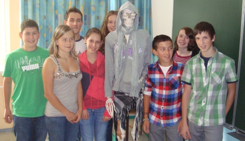 Unserem Schulskelett "Maxl", der eigentlich zum Erkunden unserer Knochen gedacht ist, wurde kalt,