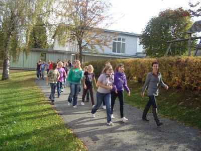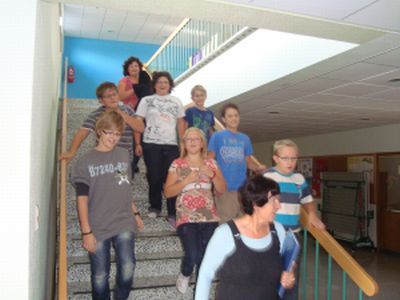 Gemeinsam verlassen die SchülerInnen mit den LehrerInnen die Klasse und |