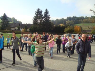 begeben sich zum Vorplatz der Volksschule. | ![]() |