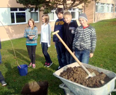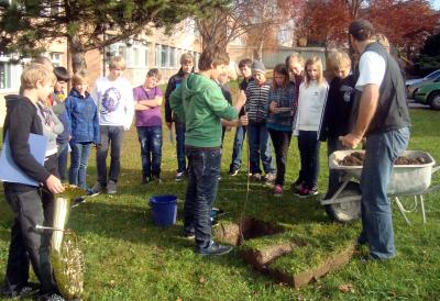 Am Donnerstag, den 10.11.2011, pflanzten die Schüler der 3a einen Walnussbaum. | ![]() |