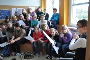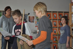 Jede Klasse übernimmt einmal die Aufgabe, eine kurze Adventsatmosphäre in die Bücherei zu zaubern.