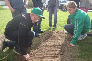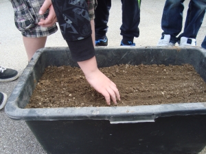 Im Trog wird in die Erde der Samen eingearbeitet.. |