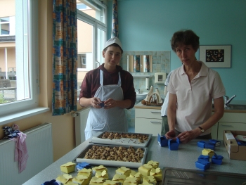 Müslibusserl für die 70 - Jahrfeier! Die süßen Leckerbissen wurden in selbstgemachte Schachterl