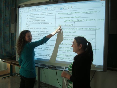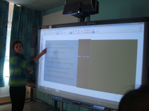Nicht nur Schüler, sondern auch Lehrer haben Spaß beim Arbeiten mit dem Smartboard. | ![]() |