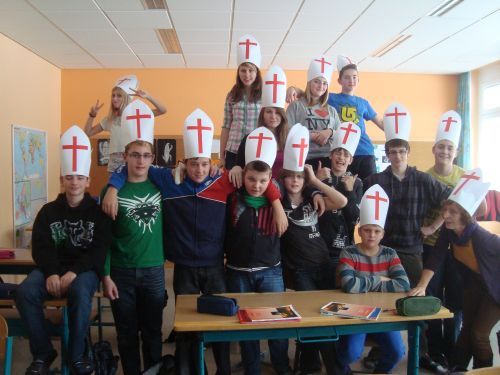 Frau Bernadete Falkinger und Herr Franz Luksch organisieren mit den Schülern und Schülerinnen eine besinnliche Feier. | ![]() |