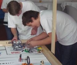 Martin A. und Andreas B. bauten und programmierten die Roboter.