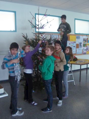 Einige Schüler der 1. und 4. Klassen schmückten den Christbaum sehr schön. |