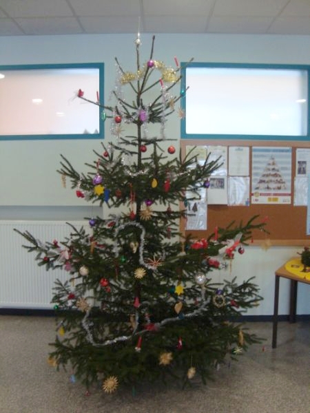 Der geschmückte Christbaum verschönert unsere große Pausenhalle. |