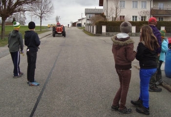 Dabei war uns Herr Willi Hopfner eine große Hilfe, denn er begleitete uns mit dem Traktor.