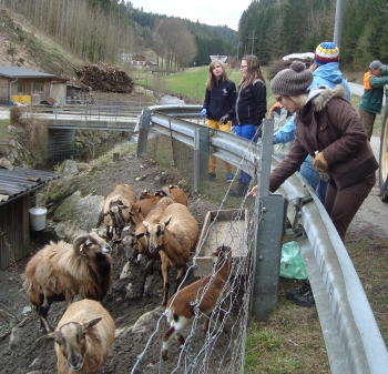 Dort trafen wir die Kindergartengruppe, wir nahmen sie auf dem Traktor mit