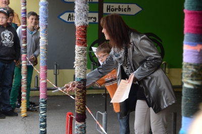 "Schneidig" eröffneten Simon und Frau Leitenbauer gemeinsam die neue Fahrradgarage. | |