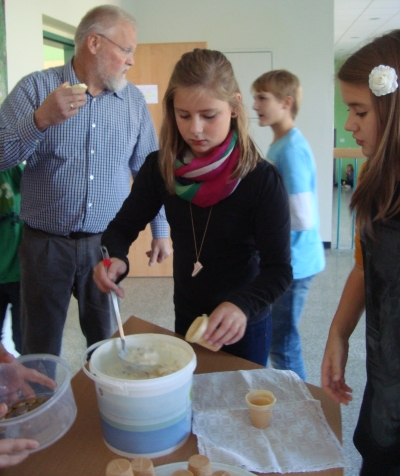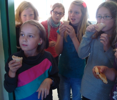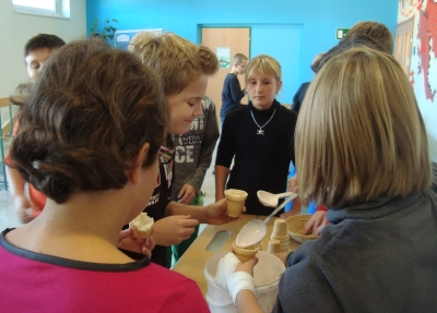 Im Oktober wartet jeden Mittwoch in der großen Pause eine besonderer Snack darauf, von uns vernascht zu werden: ein Waffelbecher gefüllt mit köstlichem Fruchtjoghurt. |