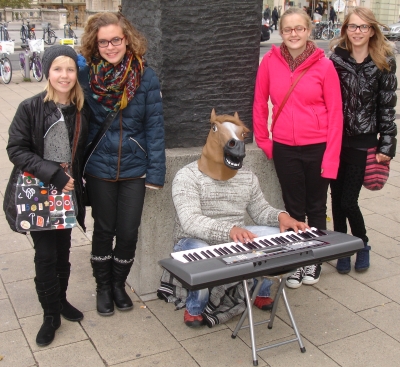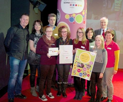 Das Mobilitätsteam – bestehend aus dessen Leiter Herrn Habringer, Frau Leitenbauer, Frau Ecker und den Schülervertreterinnen Lena Jäger, Anja Oosterlinck, Regina Wakolbinger und Nadine Schürz, begleitet von der neuen Schulleiterin Frau Direktor Maria Lindorfer - fieberte der Auszeichnung entgegen. |