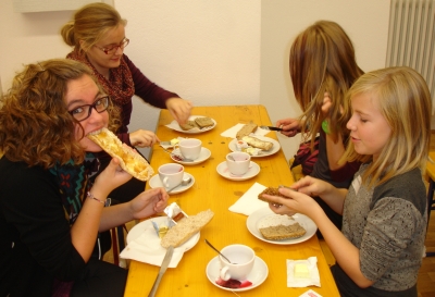 Lena genoss mit Regina, Nadine und Anja das gemeinsame Frühstück. |