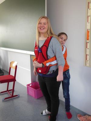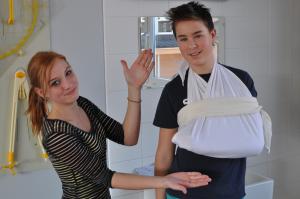 Simon "verletzte" sich am Arm, daher machte Alexandra ihm einen schmerzstillenden Verband: |