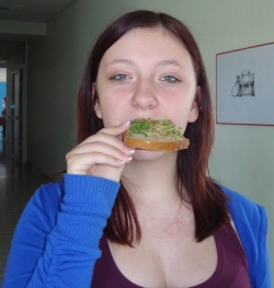 Am Donnerstag den 27.03.14 haben die Klassensprecher/innen und Stellvertreter/innen in der 10 Uhr Pause am Bäckertisch um 20 Cent leckere Kressebrote verkauft. | ![]() |