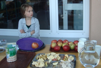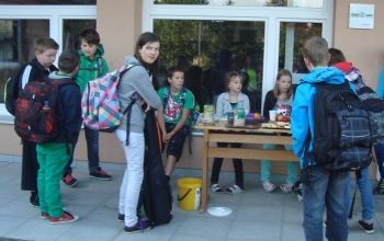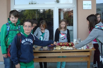 An der Labestelle gab es Erfrischungen (Wasser, Äpfel und Reiswafferl) | ![]() |