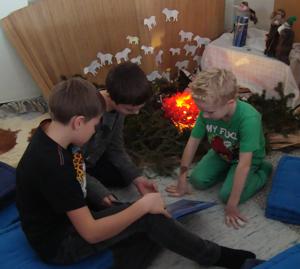 Christoph: Ich las aus dem Buch „Wie der kleine Fuchs das Christkind suchte“ vor. Der kleine Bub Mario hörte aufmerksam zu. Danach zeigte ich ihm die Schule. |