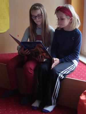 Katharina: Das kleine Mädchen Sarah war sehr aufmerksam und hörte gut zu, al ich aus dem Buch „Weihnachten auf 4 Pfoten“ vorlas. Sara war überhaupt nicht schüchtern. Nach dem Vorlesen zeigte ich ihr die Schule. Leider mussten die Schüler nach einer Stunde wieder gehen. Ich möchte wieder so eine Vorlese-Aktion machen. |