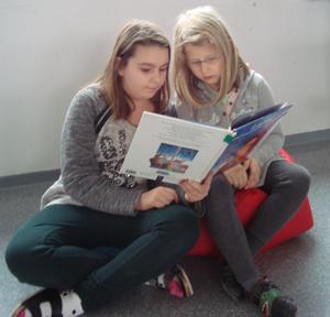 Julia Peer: Das Kind, dem ich vorgelesen habe, war Jessica Huber. Ich habe ihr im Turnsaal das Buch „Vom Engel, der sich verflogen hatte“ vorgelesen. Ihr hat das Buch gut gefallen. Zum Schluss habe ich Jessica noch die Hauptschule gezeigt. |
