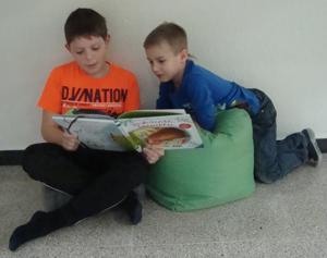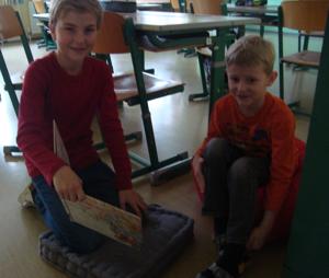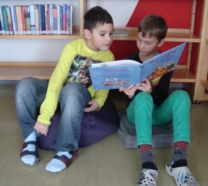 Fabian Ried: Mein Freund Manuel und ich haben Felix was vorgelesen. Felix haben die Bilder im Buch sehr gefallen. Er hatte struppelige Haare und ist uns fast immer davongelaufen. Das Zeichnen auf dem Smartboard hat ihm gefallen. Manuel: Das Kind, dem ich vorgelesen habe, heißt Felix. Mein Freund Fabian hat mit mir gelesen. Felix hat meistens gut zugehört. Als wir ihm die Schule zeigten, war er sehr begeistert – und am meisten vom Turnsaal. Wir haben ihm auch die 1b-Klasse gezeigt, in der das Smartboard ist. Darauf hat er gezeichnet und das hat ihm großen Spaß gemacht. |