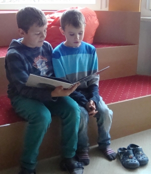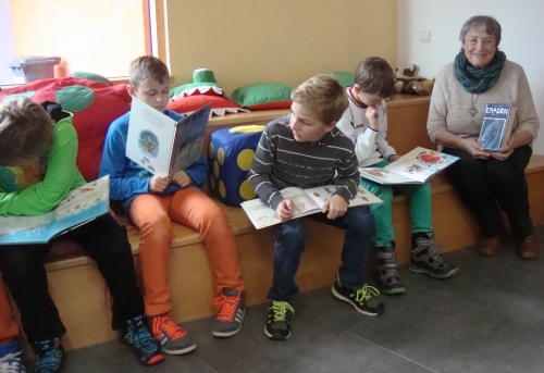 Markus Höfler: Marcel hieß das Kind, dem ich vorgelesen habe. Ich las ihm das Buch „Ben und Lena freuen sich auf Weihnachten“ vor. Unsere Lesestation war in der schönen Schulbibliothek. Zum Schluss zeigte ich Marcel unsere Schule. |