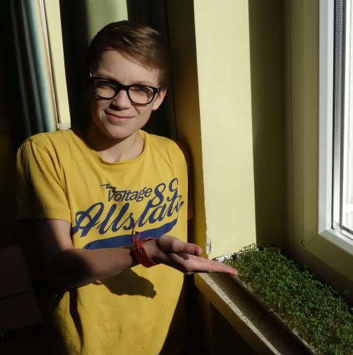 Am Donnerstag Nachmittag bin ich, Manuel Pichler, durch die Schule gegangen und habe mir den Fortschritt der Kresse in jeder Klasse angesehen. Dabei habe ich festgestellt, dass die 2b besonders liebevoll mit ihrer Kresse umgegangen ist. Denn ihre Kresse war am schönsten. |