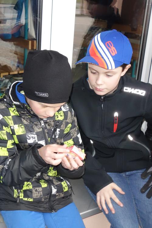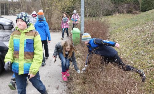 ![]() Zuletzt schenkte uns Frau Leitenbauer Traubenzucker, weil wir voller Einsatz gesammelt hatten. |