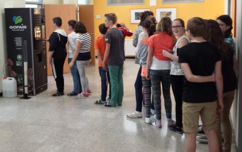 Fairtrade-Getränkeautomat Der Osterhase hat uns Schülern ein tolles Geschenk gebracht: einen Fairtrade-Getränkeautomaten. Das war der große Wunsch der Schülervertretung im Schulparlament. |