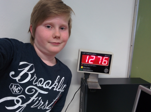 Wir Menschen produzieren dieses Gas beim Ausatmen. Eine erhöhte Menge dieses Gases beeinträchtigt unsere Konzentration und reduziert dadurch unsere Lernleistung. Um den CO2-Wert in der Luft sichtbar zu machen, haben wir zwei CO2-Messgeräte aufgestellt. Wenn zu viel CO2 in der Luft ist, zeigt uns das Gerät an, dass wir die Fenster öffnen sollen. Somit haben wir immer genügend Sauerstoff zum Lernen, und wir hoffen, dass sich dadurch unsere Noten verbessern. |