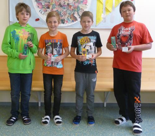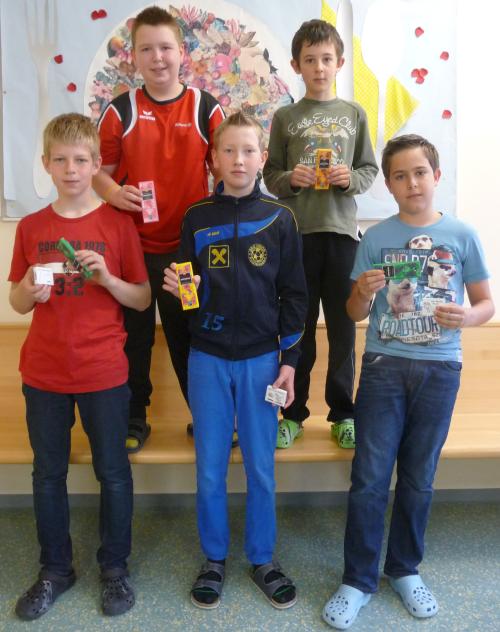 139 Kinder unserer Schule nahmen heuer am Pangea-Mathematikwettbewerb teil. Unsere SchülerInnen beteiligten sich am 25. Februar mit ca. 18 000 österreichischen SchülerInnen an dieser Veranstaltung. Die Kinder mussten 60 Minuten Aufgaben, die dem Mathematikstoff der jeweiligen Schulstufe entsprachen, lösen. Ein Ziel ist, Interesse und Spaß an Mathematik und den Naturwissenschaften zu wecken. Am 28. April konnten im Rahmen einer schulinternen Siegerehrung an folgende erfolgreiche Schülerinnen und Schüler Preise übergeben werden: |