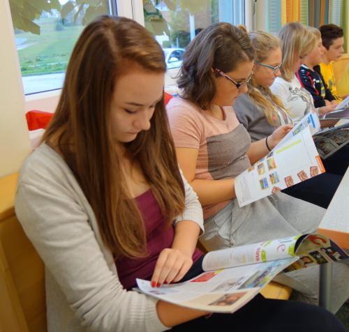 Während des Frühstücks schmökerten die Schüler/innen entweder in der Jugendzeitschrift TOPIC oder in eigenen Büchern von zuhause. Als „Ehrengast“ wurde Medi, der neue Schüler aus Syrien, zum Frühstück eingeladen. Er freute sich sehr darüber. |