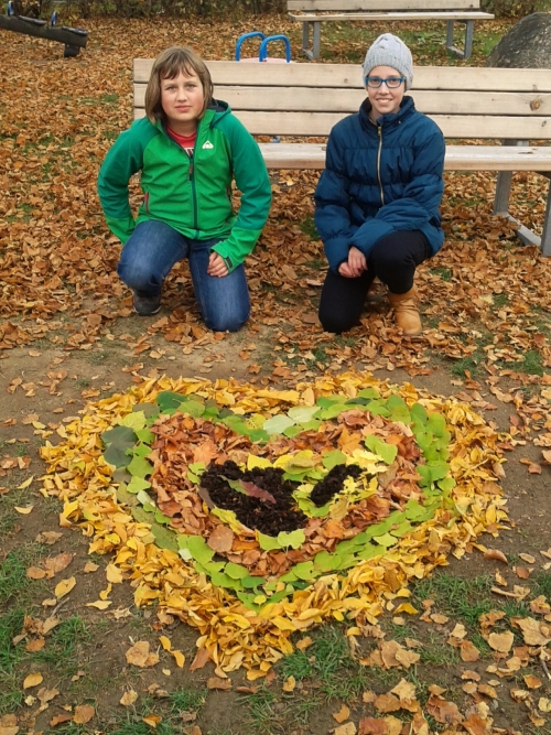 „Die Land Art war die schönste Zeichenstunde. Ich wusste nicht, dass man so etwas Schönes nur aus Blättern machen kann. Alle Gemälde sind sehr schön geworden.“ (Nicole Leitner, 2b)